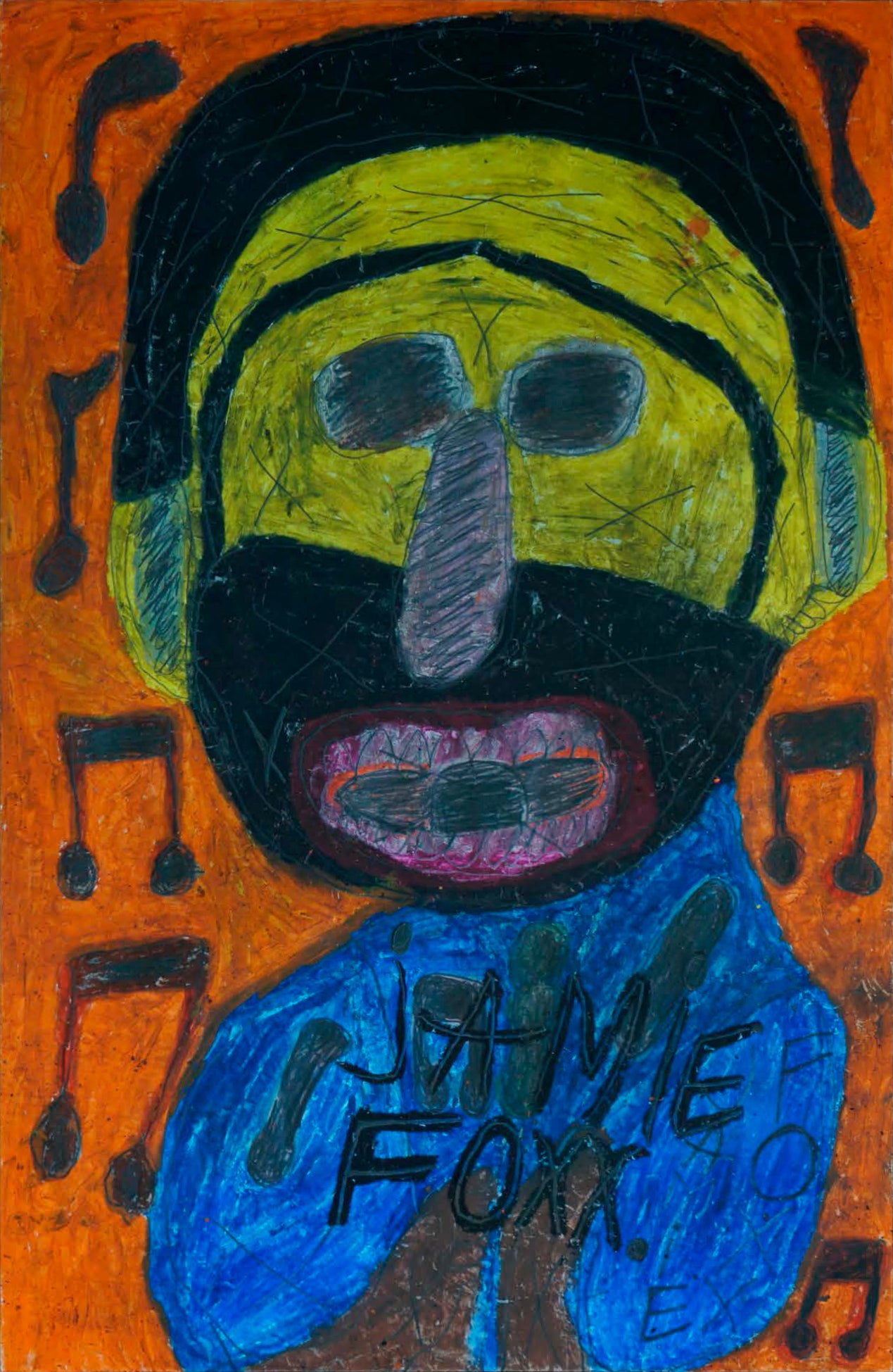 Working primarily in portraiture, Tim depicts his favorite media personalities, athletes, and entertainers. His emerging nonconformist style combines humor, honesty, and insight, transforming familiar icons into reflections on society and racial perception. Each drawing captures the essence of its subject through a vivid mix of pencil and oil pastel, blending precision with expressive color.